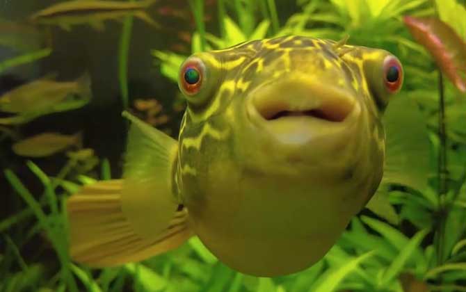 狗头鱼是常见的一种观赏鱼,学名叉鼻鲀,因头部酷似狗头而得名,在生物分类学上属于动物界、脊索动物门、辐鳍鱼纲、鲀形目、四齿鲀科、叉鼻鲀属海洋鱼类的统称,全世界共有7种,肝脏和卵巢有剧毒,不可食用,但可作观赏鱼饲养在鱼缸或水族箱中,具有极高的观赏价值。