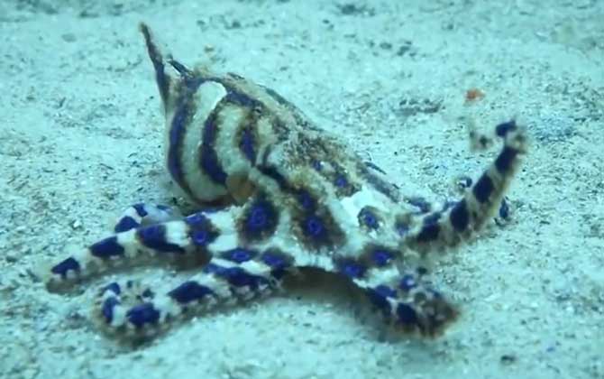 3、拟态:章鱼能通过拟态躲避敌害,得益于章鱼体表分布着大量色素细胞,利用色素细胞既能拟态成海蛇、狮子鱼等躲避掠食者,又能伪装成沙质海底、黑色岩缝等捕捉猎物。