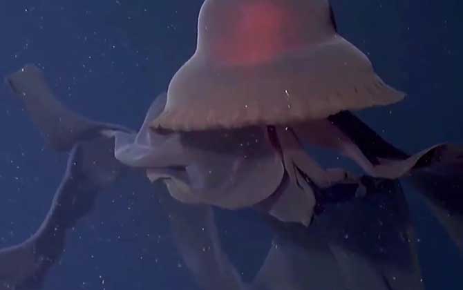 冥河水母是一种深海大型水母,被认为是深海生态系统中最大的无脊椎食肉动物之一,在生物学分类上属于动物界、刺胞动物门、钵水母纲、旗口水母目、海月水母科、冥河水母属刺胞动物,这种水母到目前为止人们只看到过115次。